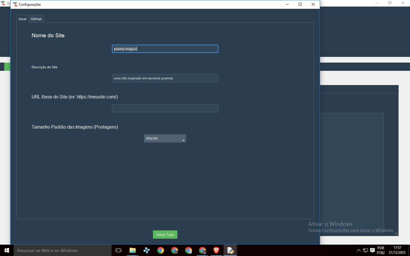 StaticForge é um aplicativo desktop gratuito em Python que permite criar sites estáticos (super rápidos, seguros e gratuitos) sem precisar saber programação avançada.